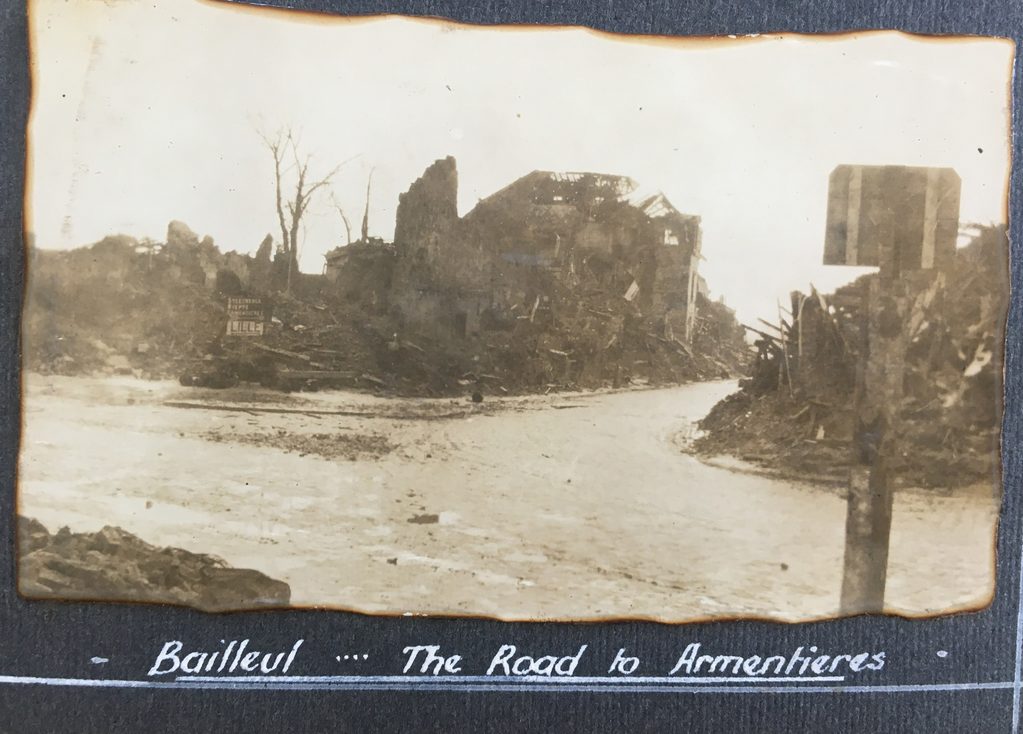 Although there were no serious discussions, my father still managed to convey memories of his time in France and Belgium when he was in a jovial mood, with light-hearted ditties and quips. I well remember his singing Mademoiselle From Armentières parlez-vous although I don’t remember all the lines and they were probably very different to those he sang at the front. He also had his favourite quips such as referring to Wipers (Ypres) and mercy buckets (merci beaucoup) as ‘thank you’.